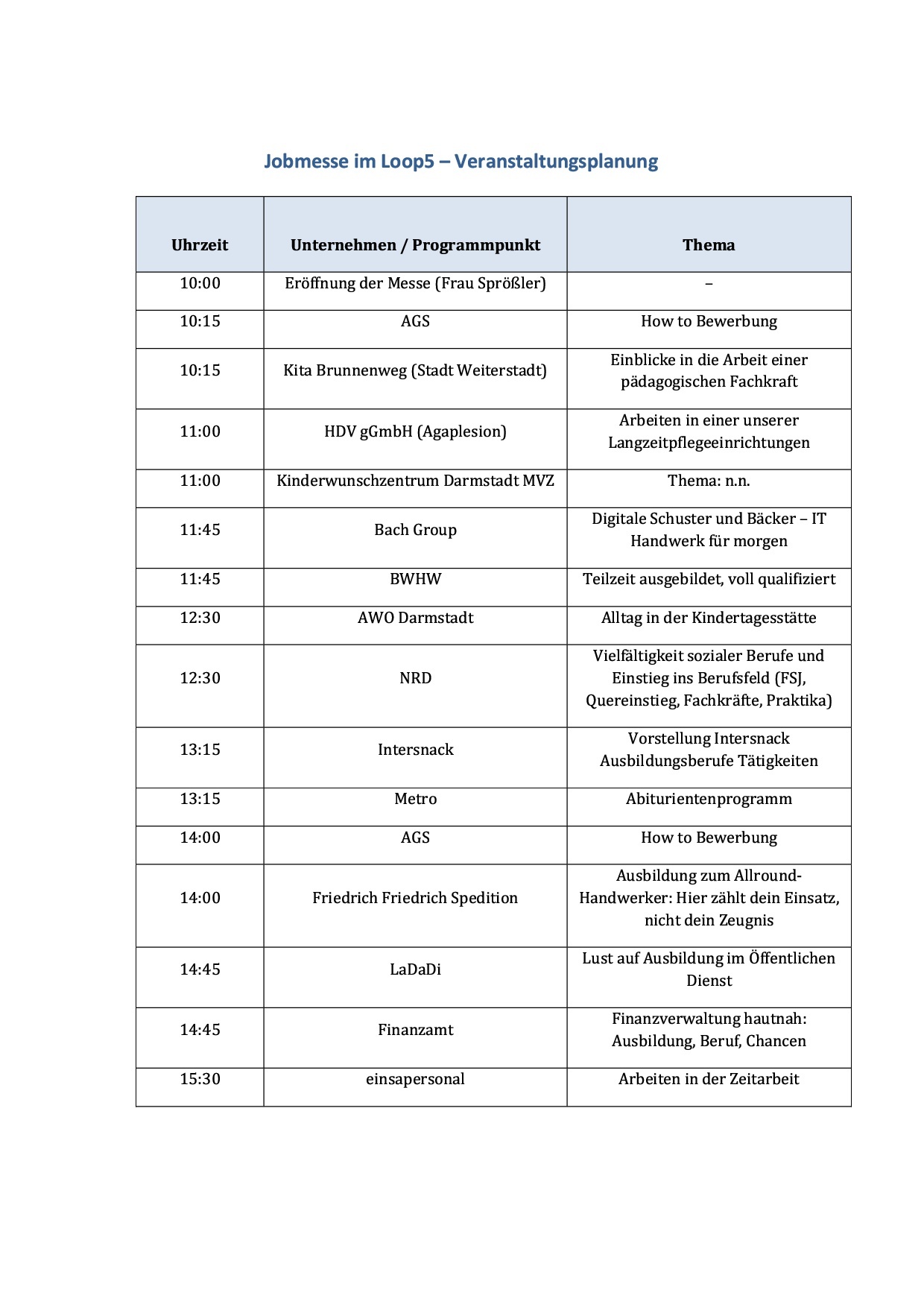 Jobmesse im Loop5 – Veranstaltungsplanung