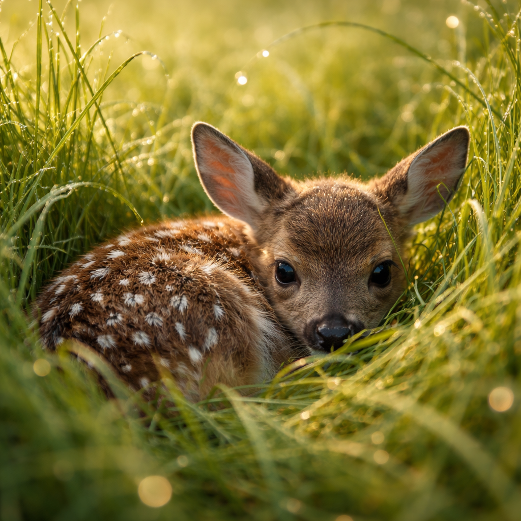 Bild: Reh im Morgentau der Wiese. (c) KI, Landkreis Darmstadt-Dieburg.