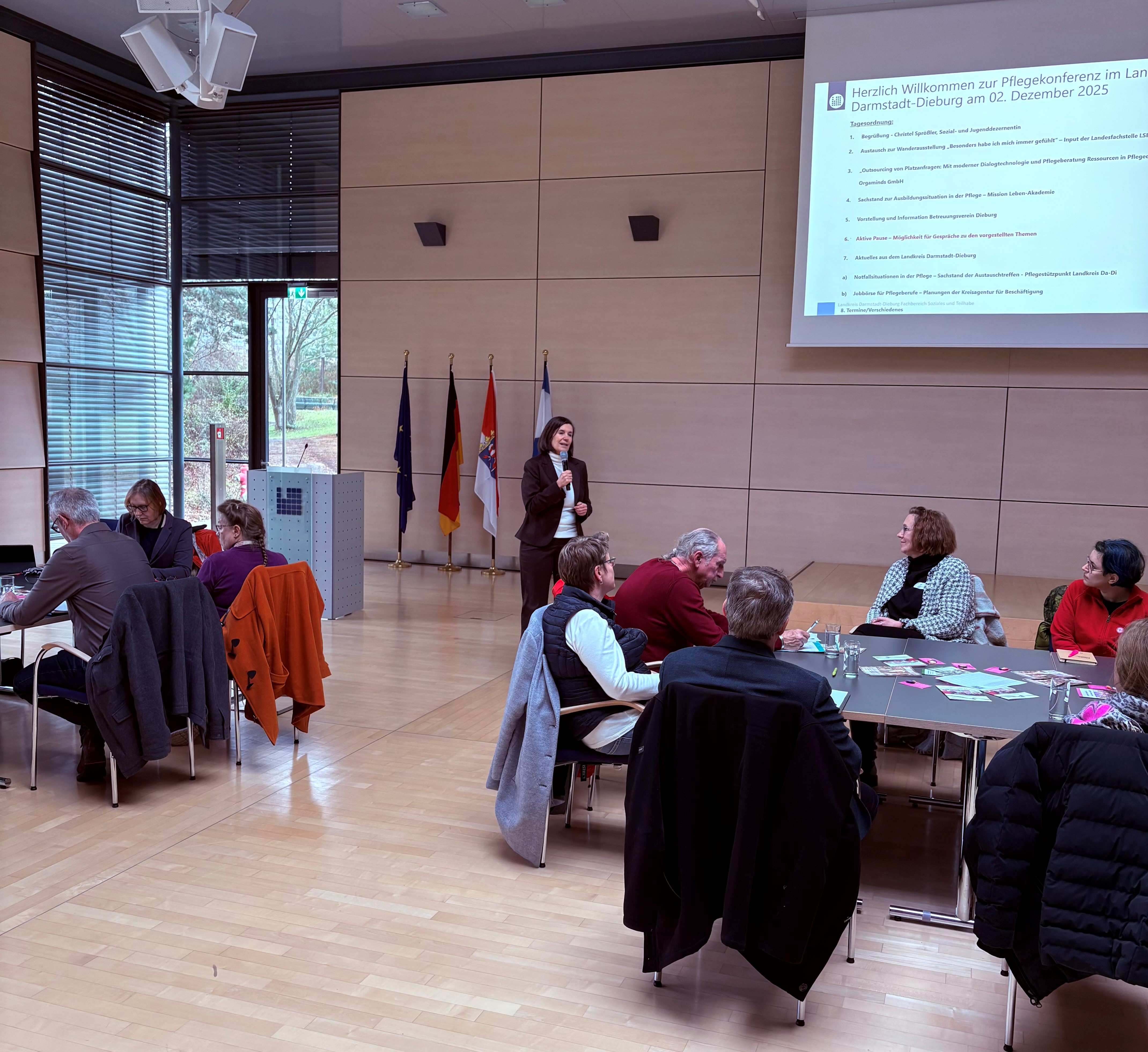 Darmstadt-Dieburg. Mit einem breiten Themenspektrum hat die Pflegekonferenz des Landkreises Darmstadt-Dieburg am 2. Dezember im Kreishaus Darmstadt erneut gezeigt, wie vielfältig und herausfordernd die Pflegelandschaft ist. Zum Auftakt sprach Elke Kreß von der Hessischen Landesfachstelle LSBT über Diversität im Alter. Sie machte deutlich, dass bis heute unklar ist, wie viele lesbische, schwule oder transgeschlechtliche Menschen in Deutschland leben – und noch weniger ist über ihre Lebenslagen im Alter bekannt. Diese Unsichtbarkeit erschwert sowohl gesellschaftliche Akzeptanz als auch eine bedarfsgerechte Unterstützung in Pflege und Betreuung.