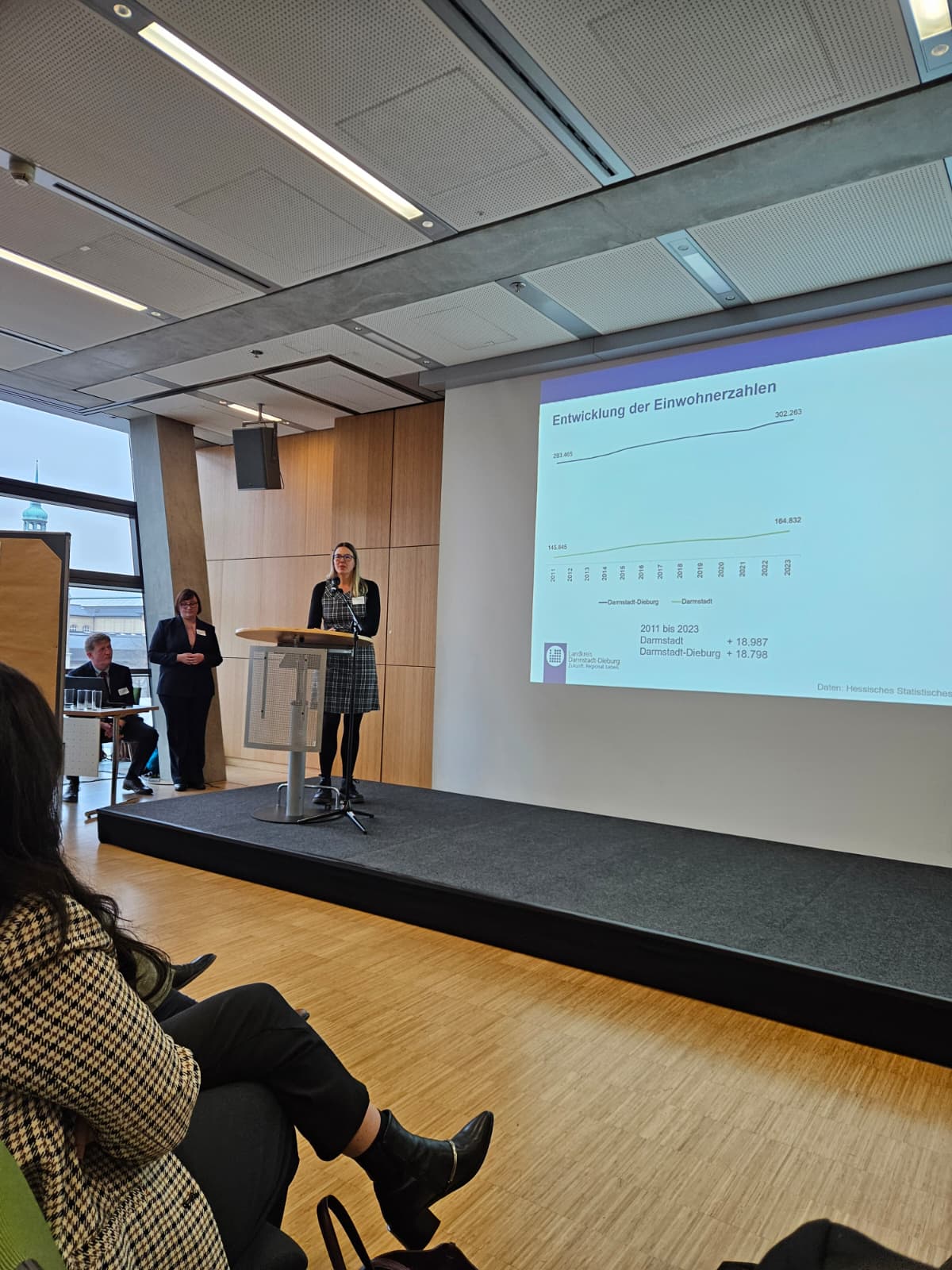 Kreisstatistikerin Dr. Tamara Eschler ordnete die aktuellen Entwicklungen der Wohnraumversorgung in Stadt und Kreis im Rahmen der 2. Wachstumskonferenz ein. (c) Matti Merker, Landkreis Darmstadt-Dieburg