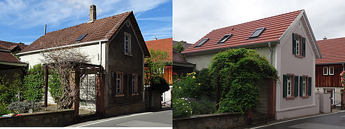 Vorher und nachher: Ein gelungenes Beispiel aus dem Dorferneuerungsprogramm ist die private Sanierung der Hauptstraße 13 in Seeheim-Jugenheim. Hier wurde die Fassade und der Innenraum saniert und die Haustechnik des denkmalgeschützten Gebäudes erneuert. Fotos: Landkreis Darmstadt-Dieburg