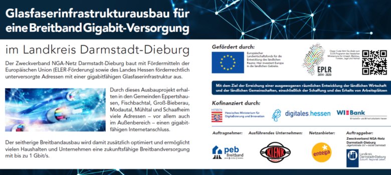 Mit einer gigabitfähigen Glasfaserinfrastruktur werden durch dieses Projekt insgesamt 148 Adressen in den sechs Kommunen versorgt, die bisher im Rahmen des Ausbaus der „Weißen Flecken“ (Internetbandbreiten bis zu 30 Mbit) nicht berücksichtigt werden konnten. Zu den sechs Kommunen gehören Eppertshausen, Fischbachtal, Groß-Bieberau, Modautal, Mühltal und Schaafheim. Auftraggeber des Ausbaus ist der Zweckverband NGA-Netz Darmstadt-Dieburg. Auftragnehmer ist die PEB Breitband GmbH & Co. KG, die eine Beteiligungsgesellschaft der ENTEGA Medianet und der Fa. Klenk ist. Durch die Firma Klenk aus Modautal/Asbach werden die Netzplanungen und die Tiefbauarbeiten übernommen. Durch die ENTEGA wird als Netzanbieter der Netzbetrieb gewährleistet.