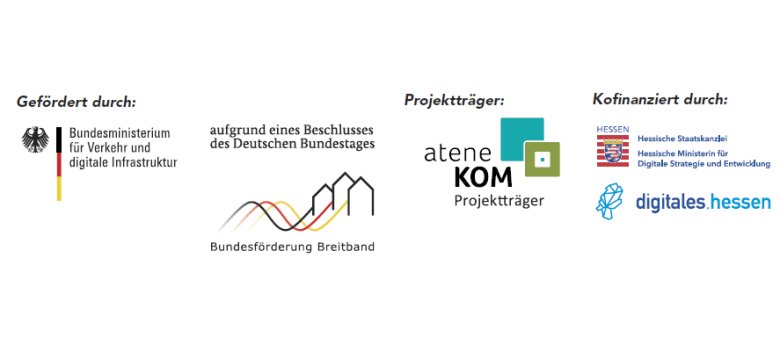 Der Zweckverband NGA Netz Darmstadt-Dieburg bedankt sich für die Zuwendungen des Bundes vertreten durch den Projektträger aconium GmbH -in Höhe von 50 %- und des Landes Hessen, Hessisches Ministerium für Digitalisierung und Innovation -in Höhe von 40%- des Auftragswerts, den der Zweckverband als Initiator und Auftraggeber zur Finanzierung des Projektes aufwenden musste.