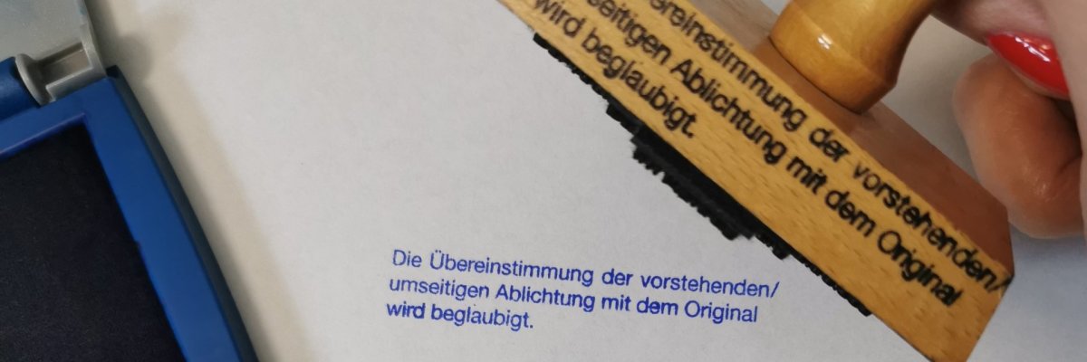 - Terminvereinbarung ODER postalische Zusendung zur (Vor)beglaubigung